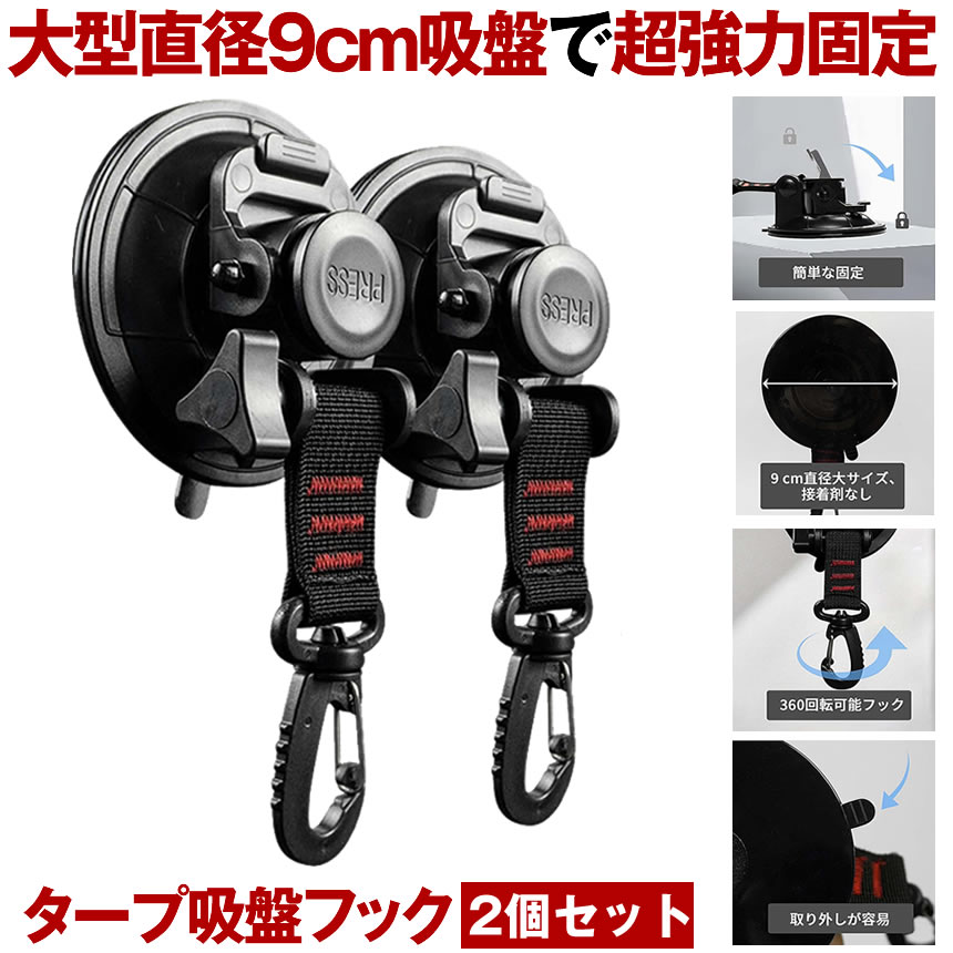 吸盤 フック 2個セット 直径 9cm 強力 カーサイドタープ 車 タープ サンシェード ベランダ 固定 カーサイドオーニング テント 自動車 荷物 固定 キャンプ用品