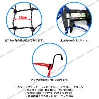 ツーリングネット カーゴネット 40×40cm 25マス フック付き 太さ4mm 反射 自転車ネット ゴムネット バイクネット かごカバー 盗難防止