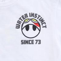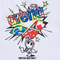 世界をテーマにしたTシャツ。様々な国の国旗でアリーナマークをデザイン。アリーナ君とクロール君がゴーグルとキャップを着用しているのもポイント。肌あたりがよく、トレーニングに適したTCインレイを使用。
