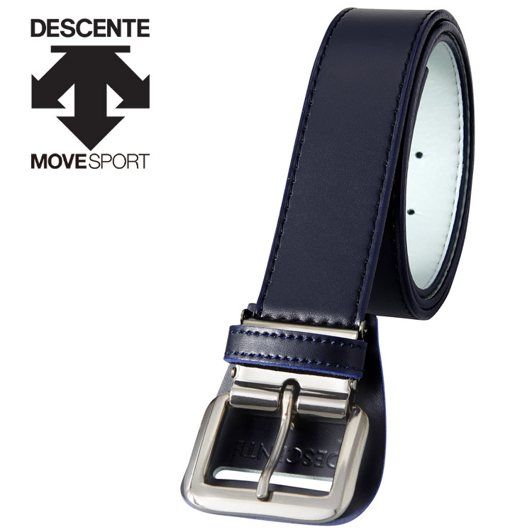 シルバーバックルのスタンダードモデルのベルトのジュニアモデル。バックルに「DESCENTE」ロゴ、ベルト端にもスピリットマークが配置されています。