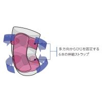 6本の伸縮ストラップが多方向からひじ関節を固定するサポーター2つのベルトでサイズ調整、4つのベルトで固定力を調節。(A) 多方向からひじを固定する6本の伸縮ストラップ2層構造でひじ全体を守りますスピーディーに装着できるスリップオンデザイン品番 ラップタイプ/左右兼用/1個入り/カラー:ブラック57548 S〜M ひじ周り15〜28cm58549 L〜XL ひじ周り28〜40cm
