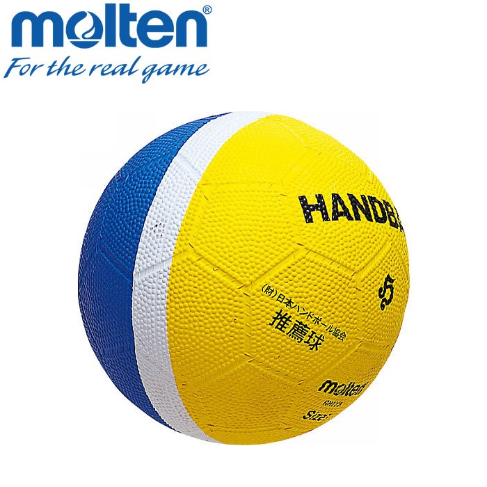 (公財)日本ハンドボール協会推薦球 ●ソフトタイプ ●専用メジャー付き ●突き抜け防止バルブ ●空気の入れ過ぎにご注意ください。空気を入れたまま車内に放置しないでください。破裂のおそれがあります。 ●特許登録済 ●タイ製 ●ゴム ●130-150g ●YB黄×青