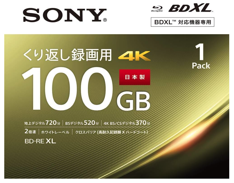 ソニーSONY 1枚地デジ約12時間ドラマ・アニメまとめ保存 ソニー / 1枚入り / ビデオ用ブルーレイディスク / くり返し録画用 / BD-RE / 1枚あたり100G