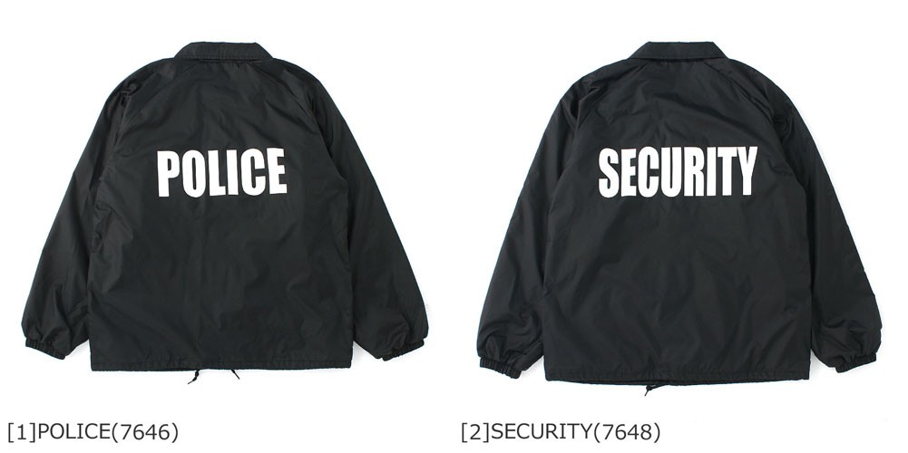 ● バック部分に「POLICE」と「SECURITY」のプリントが施されたインパクトのあるジャケットです。