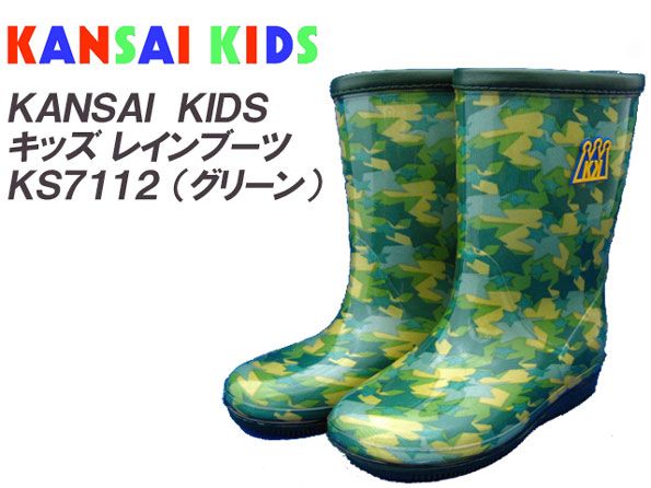 キッズレインブーツ/長靴 [ KANSAI KIDS カンサイキッズ ] KS7112 グリーン ●18cm〜23cm