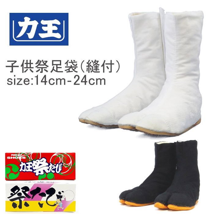 力王 子供たび(縫付) マジック 白 黒 14.0cm〜24.0cm 祭足袋