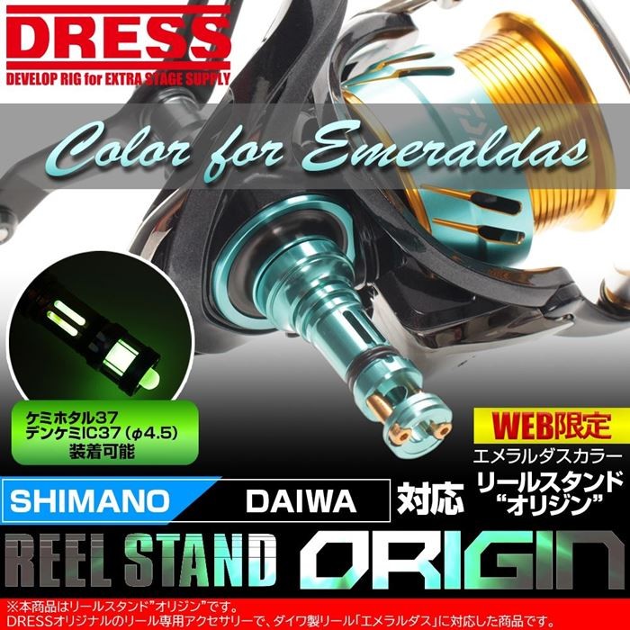 ※本商品はリールスタンド"オリジン"です。DRESSオリジナルのリール専用アクセサリーで、ダイワ製リール「エメラルダス」に対応した商品です。