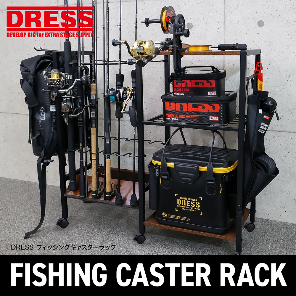 DRESSフィッシングキャスターラックは、釣り人のライフスタイルに寄り添う“本格派の収納&作業ステーション”です。