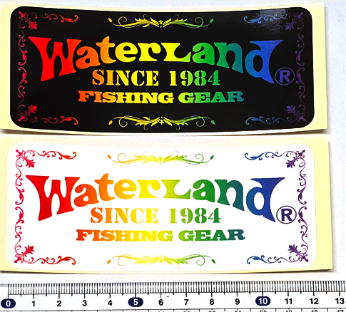 ウォーターランド ロゴ フィッシングギア ステッカー S Wレインボー+Bレインボー 2枚入り 069719 横123mm×縦54mm