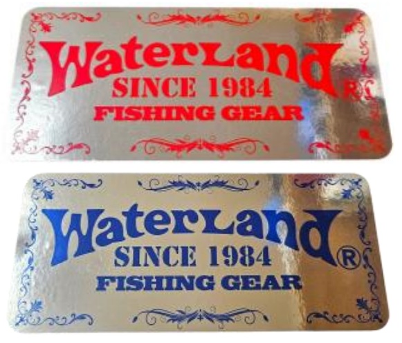 ウォーターランド ロゴ フィッシングギア ステッカー S Sレッド+Sブルー 2枚入り 070166 横123mm×縦54mm