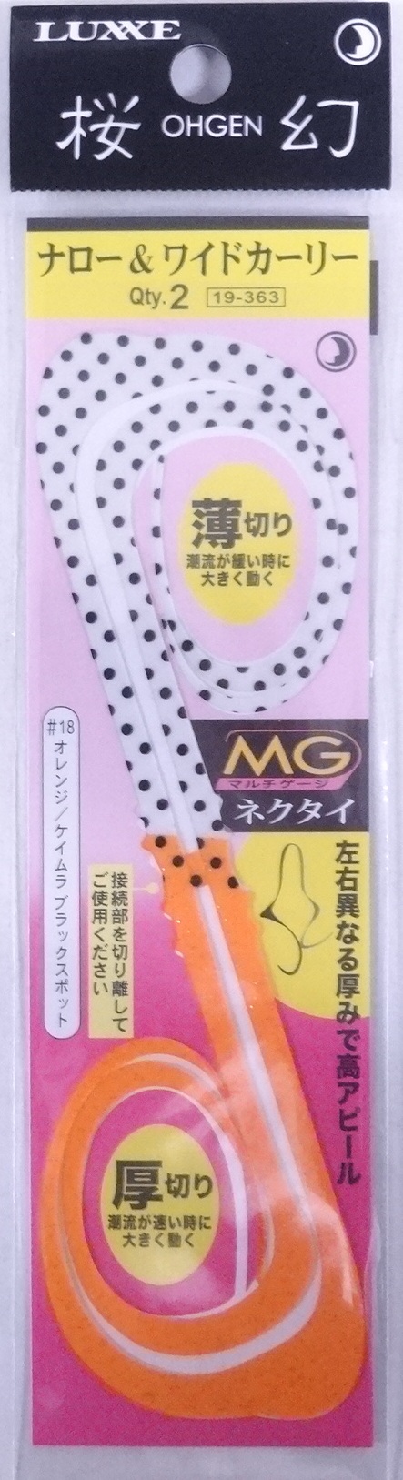 がまかつ 桜幻 マルチゲージネクタイ ナロー&ワイドカーリー 18 オレンジ/ケイムラブラックスポット 747942