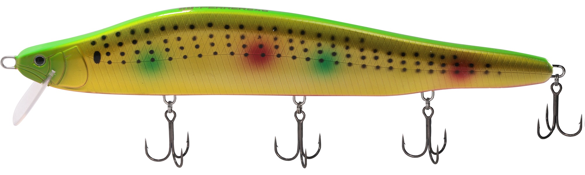 極限まで薄くしたボディにより通常サイズのビッグベイトよりも1/2〜1/3にウエイトが落ちたことにより比較的ライトなタックルで使用できるのも特徴。