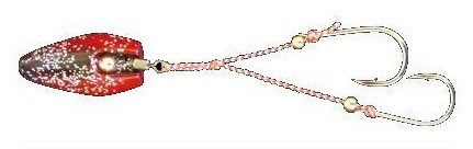 リフト&フォールで妖しくゆらめくインチク形状。ロングシャンクが海エビをしっかりホールドする小鯛鈎を使用しています。ヘッドとフックを遊動にする事により、フックUP後の鯛特有の首振りによるバラシを激減。またフォール中にバイトしてきた鯛に違和感を与えず喰い込ませる事を可能にしました。そして、ラバーセットを組み合わせる事で、今流行のキャスティング鯛ラバとしても使用する事ができます。