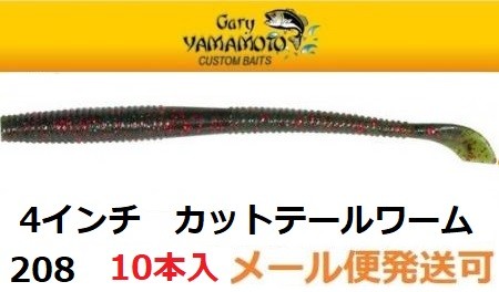 ゲーリーヤマモト 4インチ カットテールワーム 208 ウォーターメロン/ ブラック&スモールレッドフレーク 032281
