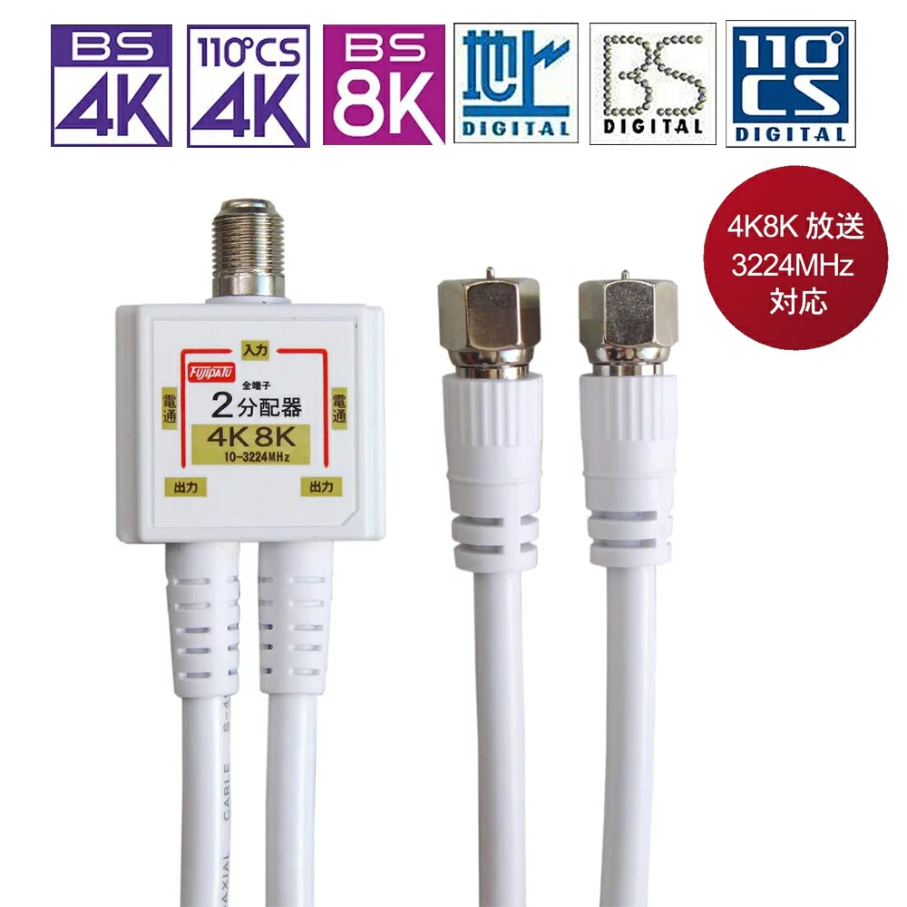 F-FACTORY 4K 8K放送対応 アンテナ2分配器 4Cケーブル一体型 (0.5m) 全端子電流通過型 ニッケルメッキ ホワイト FF-4829WH