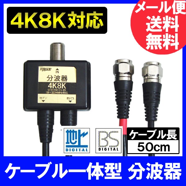 4K8K対応 アンテナ分波器 2.5Cスリムケーブル 地デジBSCSデジタル対応(ブラック)FF-4871B
