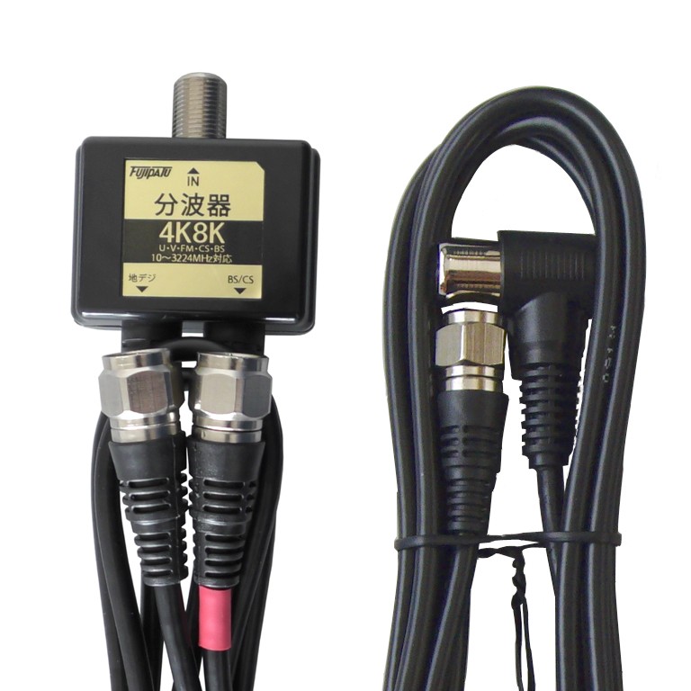 4K8K放送対応 アンテナ分波器 (BS/CS/地デジ対応) ケーブル一体型 F型-F型(0.5m) 2.5Cケーブル1.5m付き ブラック FF-4879B