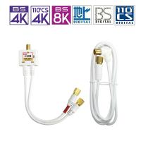 2K4K8K対応 アンテナ分波器 (BS/CS/地デジ対応) 2Cケーブル一体型 F型-F型(0.2m) 2.5Cケーブル3m付き 金メッキ ホワイトまたはブラック FF-S7613(FF4876+FF4813)