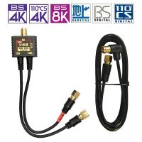 分波器ケーブル長:20cm(2C/3重シールド)、入力端子:F型ジャック、出力端子:F型接栓プラグ、付属ケーブル長:3m(2.5C/2重シールド)、F型プラグ(L型)-F型コネクタ(接栓ネジタイプ)、プラグ部分:金メッキ