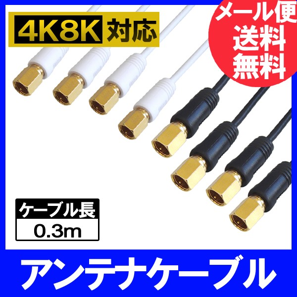 フジパーツ 極細アンテナケーブル 0.3m スリムタイプ S2.5C-FB S-S型 金メッキ ブラック/ホワイト 2本入り