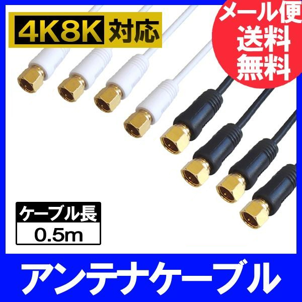 フジパーツ 極細アンテナケーブル 0.5m スリムタイプ S2.5C-FB S-S型 金メッキ ブラック/ホワイト 2本入り