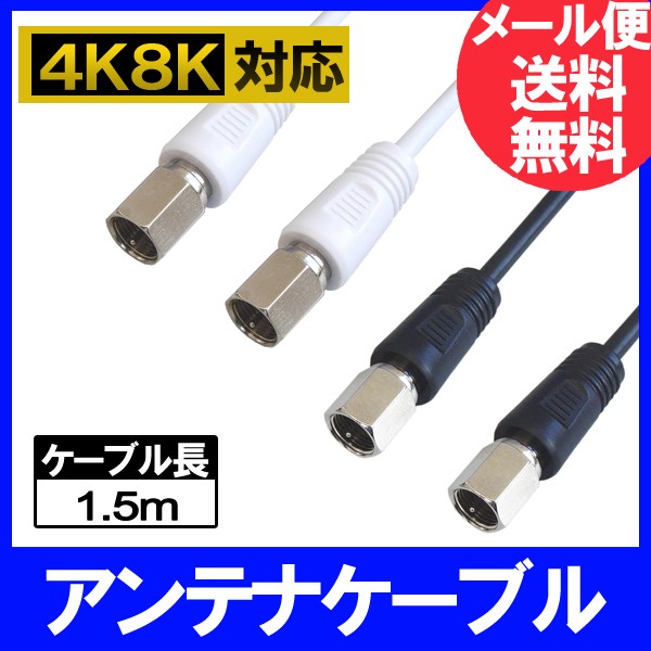フジパーツ 4K8K放送対応 極細アンテナケーブル 1.5m スリムタイプ S2.5C-FB S-S型 ニッケルメッキ ブラック/ホワイト