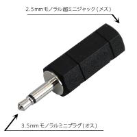 2.5mmモノラル超ミニプラグを3.5mmモノラルミニプラグに変換します。