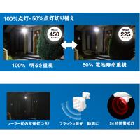 ソーラーバッテリー切れ防止の自動省エネモード機能/夜通し点灯機能で安心。フリーアーム式で方向自在