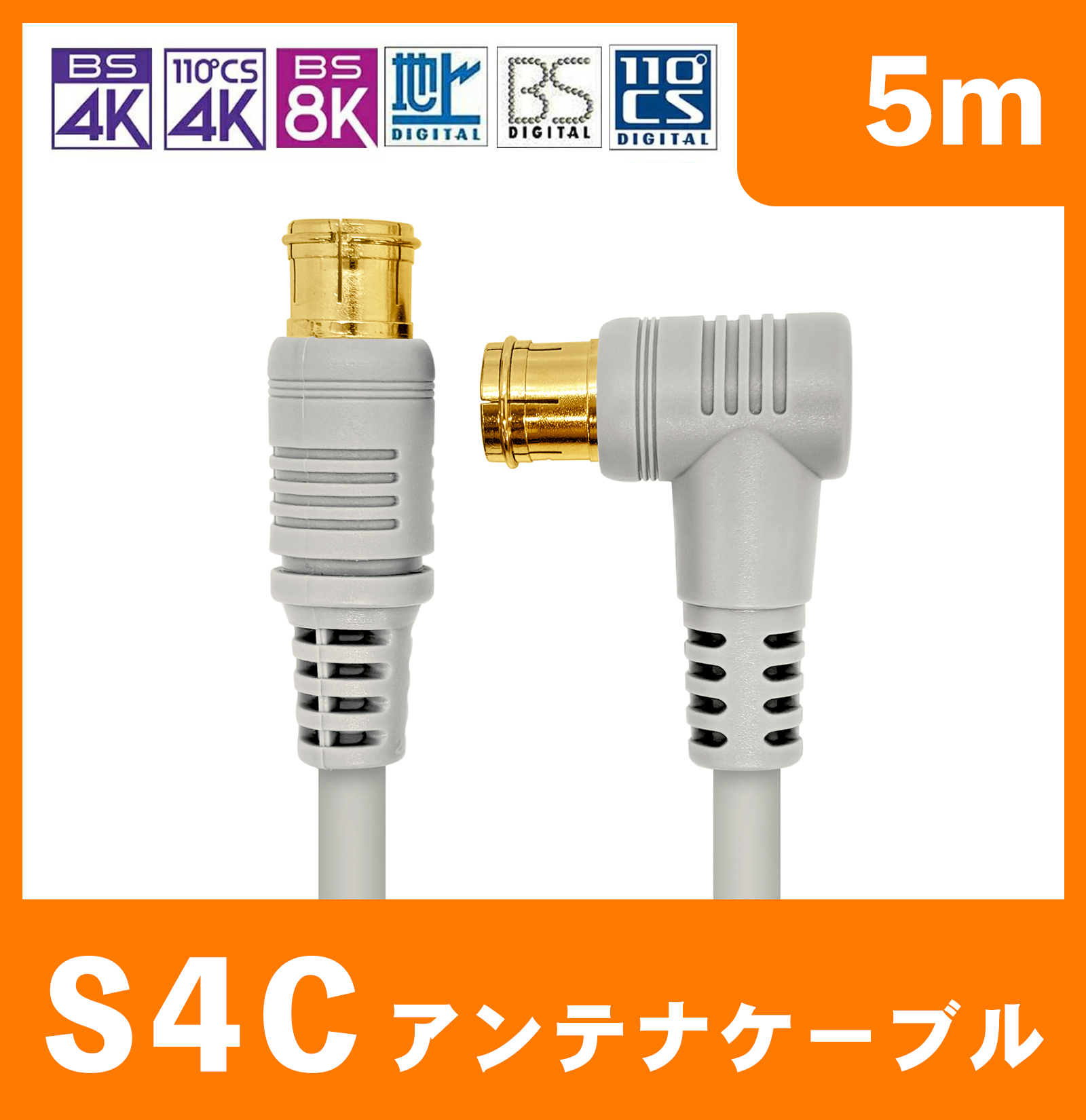 アンテナ ケーブル テレビ コード 5m 4K8K放送対応 地デジ BS CS対応 グレー(042) Z-50