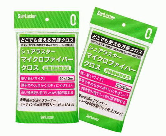 マイクロファイバークロス 2枚セットシュアラスター SurLuster S-132 マイクロファイバークロス 万能クロス 約400×400mm●品番:S-132●品名:マイクロファイバークロス●素材:ポリエステル、ナイロン●サイズ:約400×400mm●ボデイ・ガラス・内装まで細かいところもしつかり拭ける。●吸水性に優れているので、洗車後の水分の拭き取りようとしても使用できます。●シュアラスターの ゼロコーティングシリーズ、固形ワックス、クリーナーの拭き取り・ 仕上げに最適です。 水分が残っていてもワックス・コーティングをすばやく拭き取ります。 吸水性に優れているので、洗車後の水分の拭き取りようとしても使用できます。●ダッシュボードや内窓等、内装のお手入れなどオールマイティにご使用頂けます。