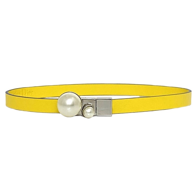 クリスチャン ディオール チョーカー ec-21632 イエロー パールホワイト 美品 レザー パール 中古