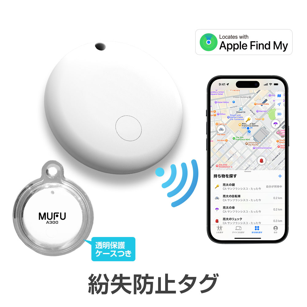 スマートタグ 紛失防止タグ 追跡タグ GPS 小型発信機 Apple MFi認証品 追跡 盗難 迷子 対策 バイク MUFU MF-A300 ゆうパケット3