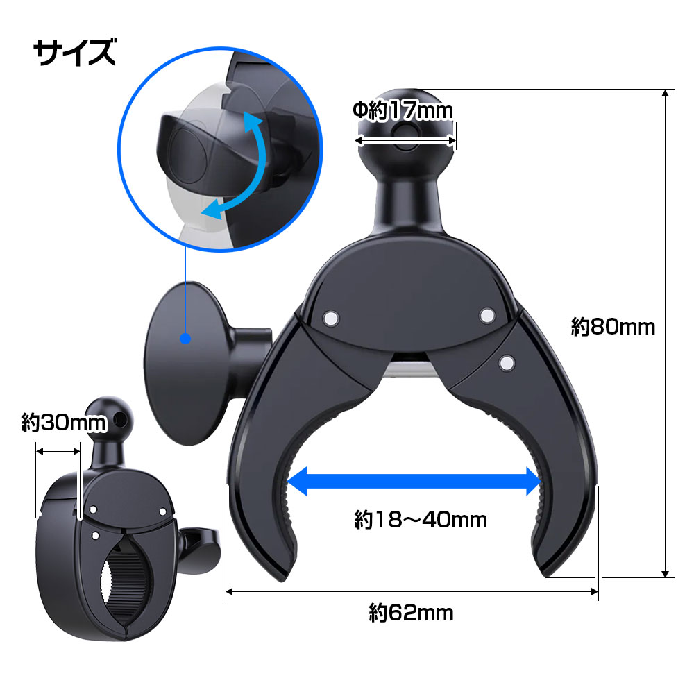 直径18〜40mmのハンドルバーに対応。