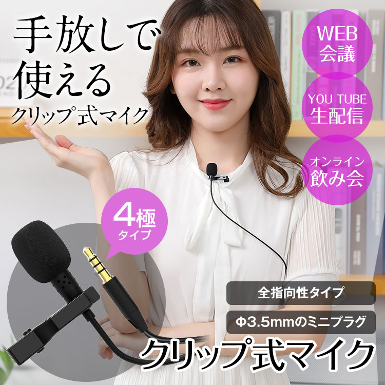 クリップ マイク コンデンサーマイク ハンズフリー ピンマイク 3.5mmプラグ iPhone Android