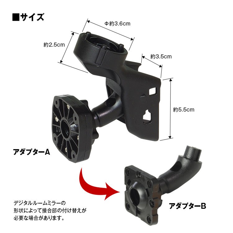 ※取り付けるデジタルルームミラーの形状により接合部の付け替えが必要な場合があります。