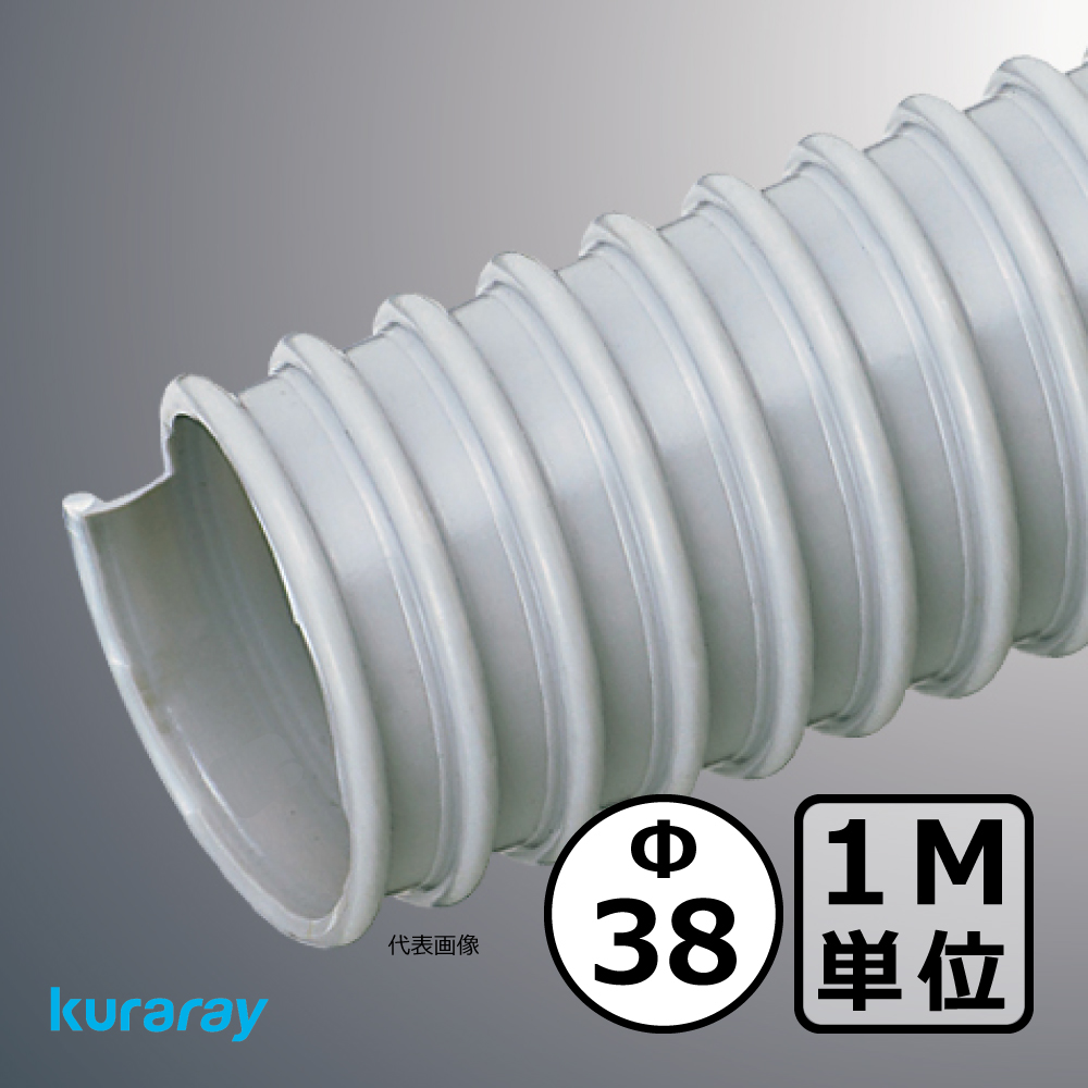 【クラレ】AD-2型(左巻)Φ38mm / ダクトホース・1M単位切り売り / 木工・機械・集塵・ダスト / グレー・自在・塩ビ【個人宅への発送不可】