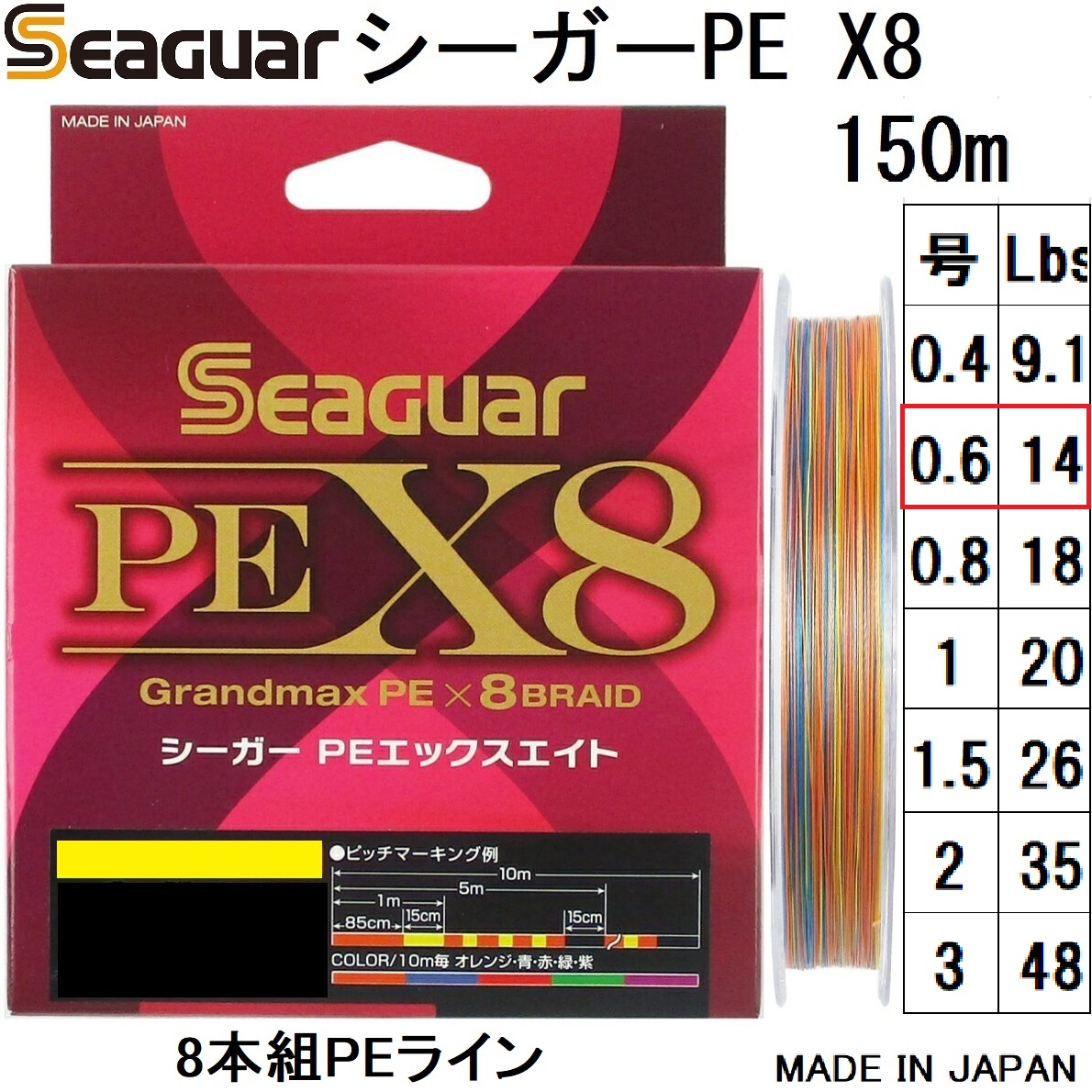 (送料無料)クレハ/Kureha シーガー グランドマックスPE X8 150m 0.6号 14Lbs 8本組PEライ ン国産・日本製 seaguar Grandmax PEX8