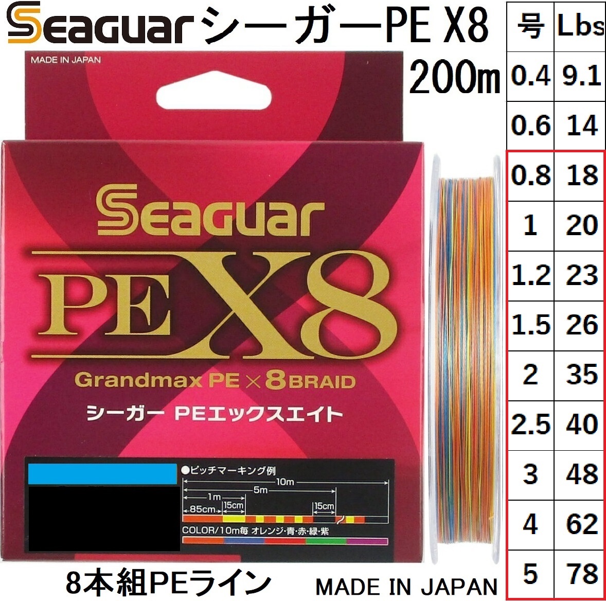 商品名 : シーガー グランドマックスPE X8 200m seaguar GrandmaxPE X8 200m ピーイー エックスエイト PEX8