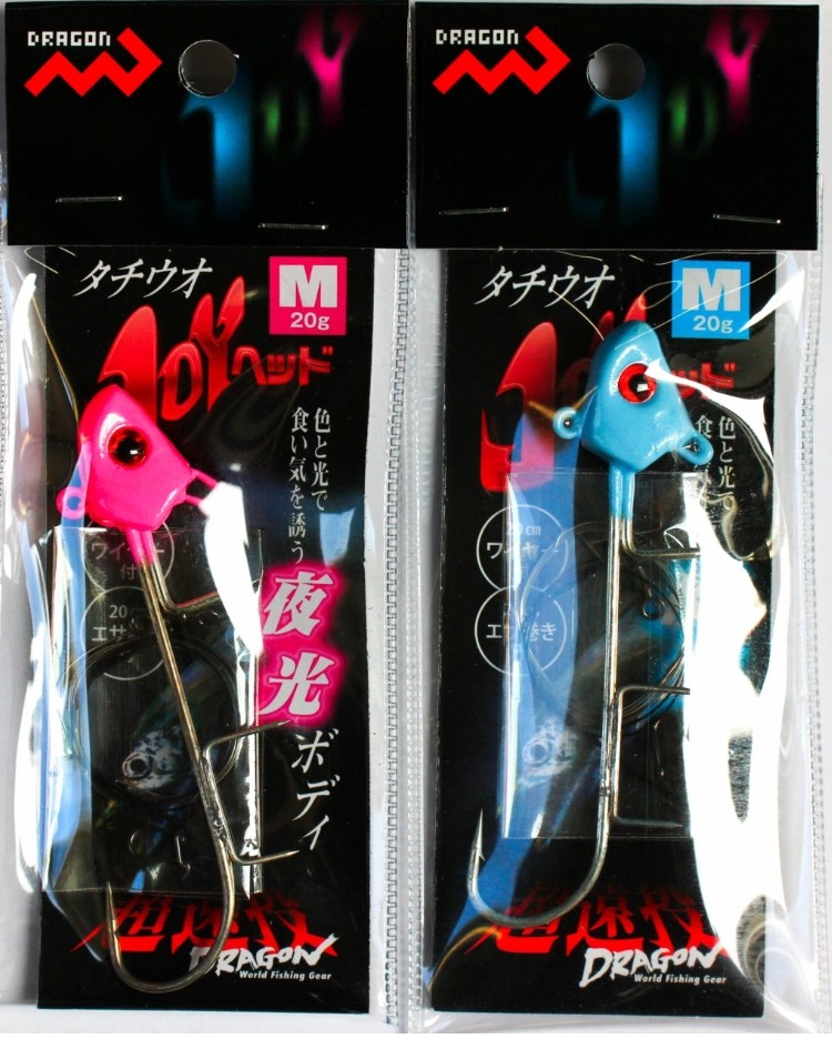 (新色)ドラゴン・マルシン タチウオJOYヘッド(1本針) ブルー夜光, ピンク夜光 S, M, L, LL 堤防引釣用太刀魚テンヤ(メール便対応)