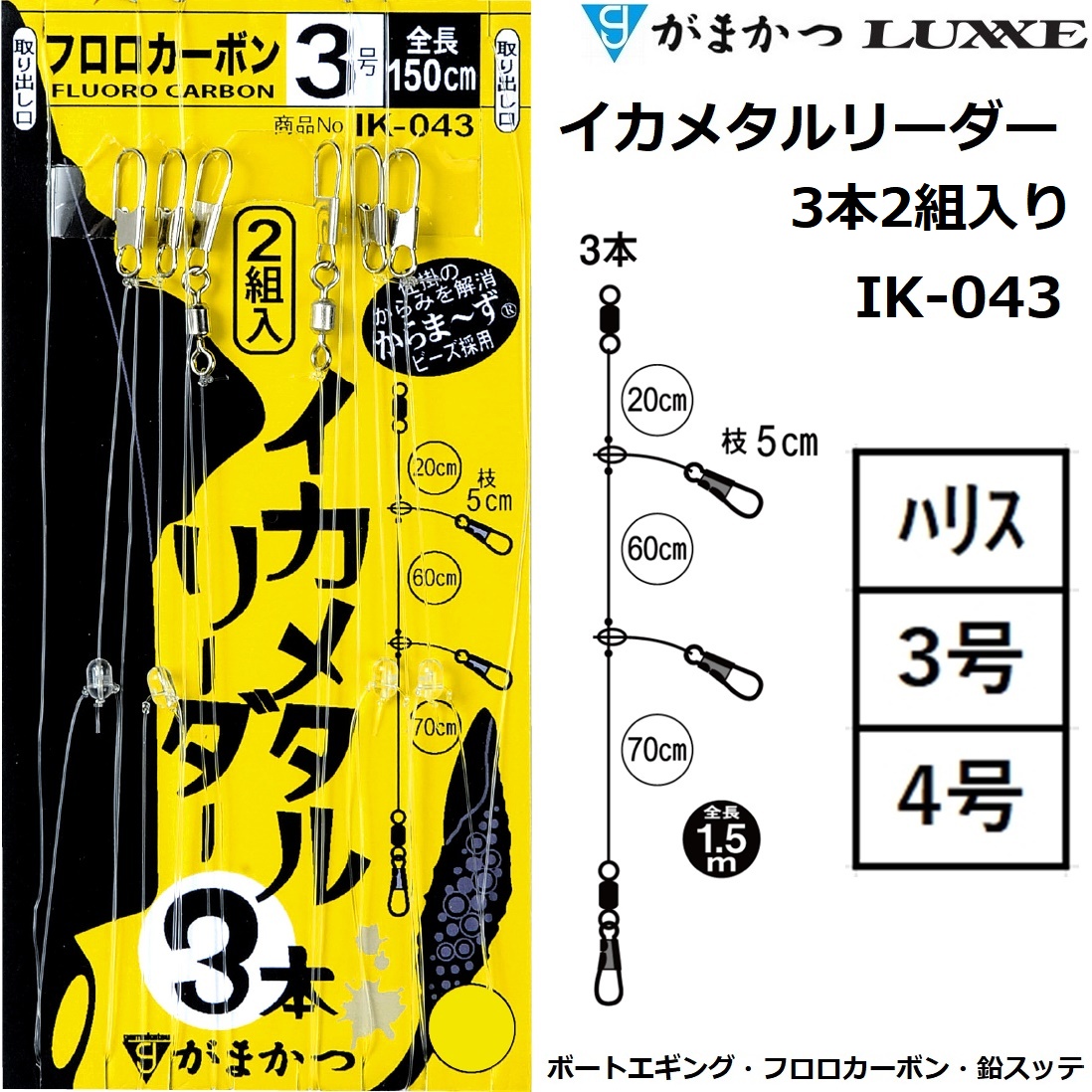 商品名 :イカメタルリーダー3本2組入り IK-043 42115 全長1.5m