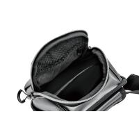●へち・落とし込み釣りに必要な道具をまとめられるポーチを採用。小物からストリンガーなども収納可能。ポーチの蓋部分開閉しやすいラウンド形状のフラップを採用。ポーチの内部を二層に分けれる仕切りを取り付け。フロント部分にはすぐに取り出したいハリスやクイックケースなどを収納できる薄型ポケットを配置サイドにはカラビナなどの落下を防ぐD環を左右に二つ配置。ぶらぶらする小物を取り付けた時に納まりをよくするPPベルトを採用。