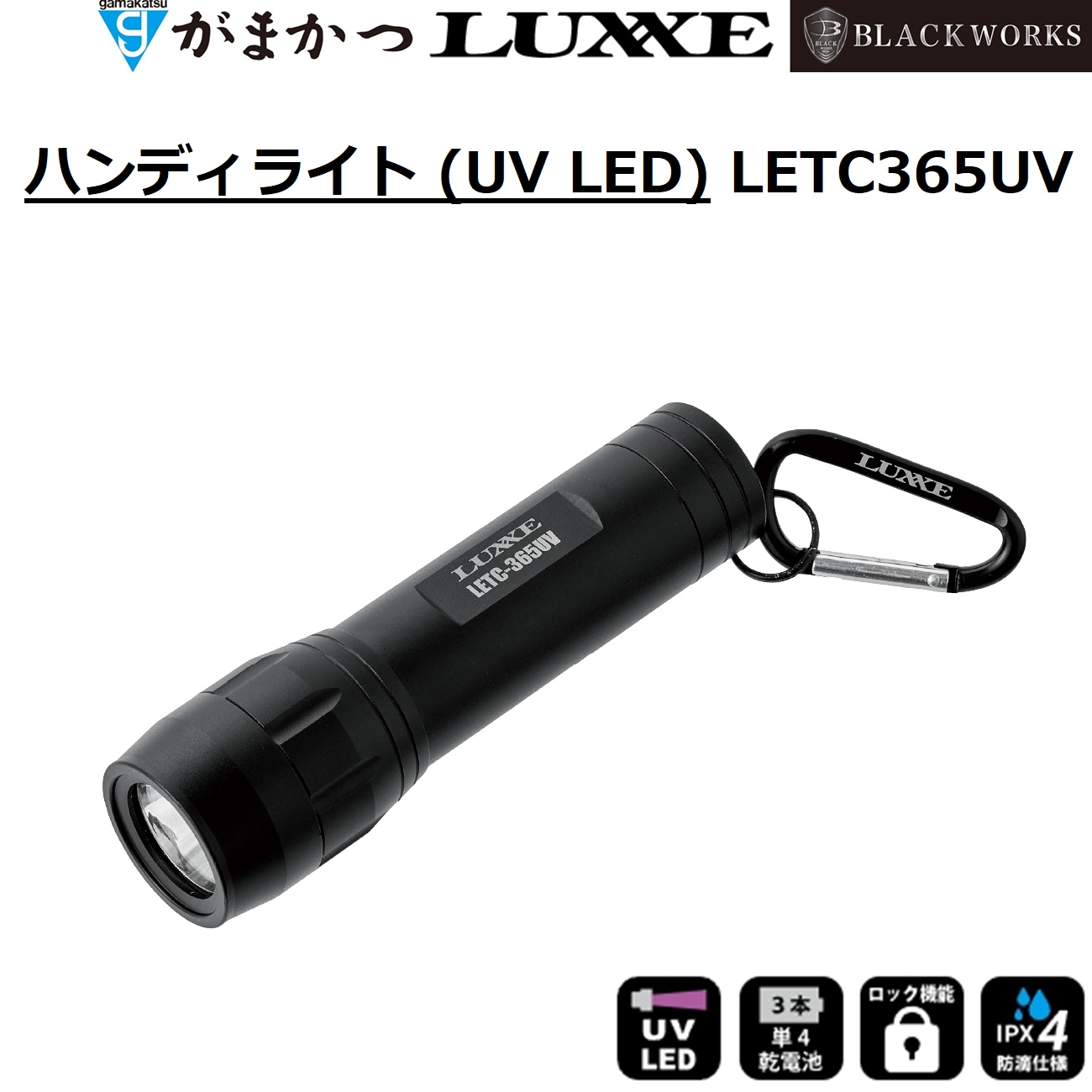 (2025年春夏新製品)がまかつ/ラグゼ ハンディライト (UV LED) LETC365UV 乾電池式UVライト アニサキスライト LETC-365UV