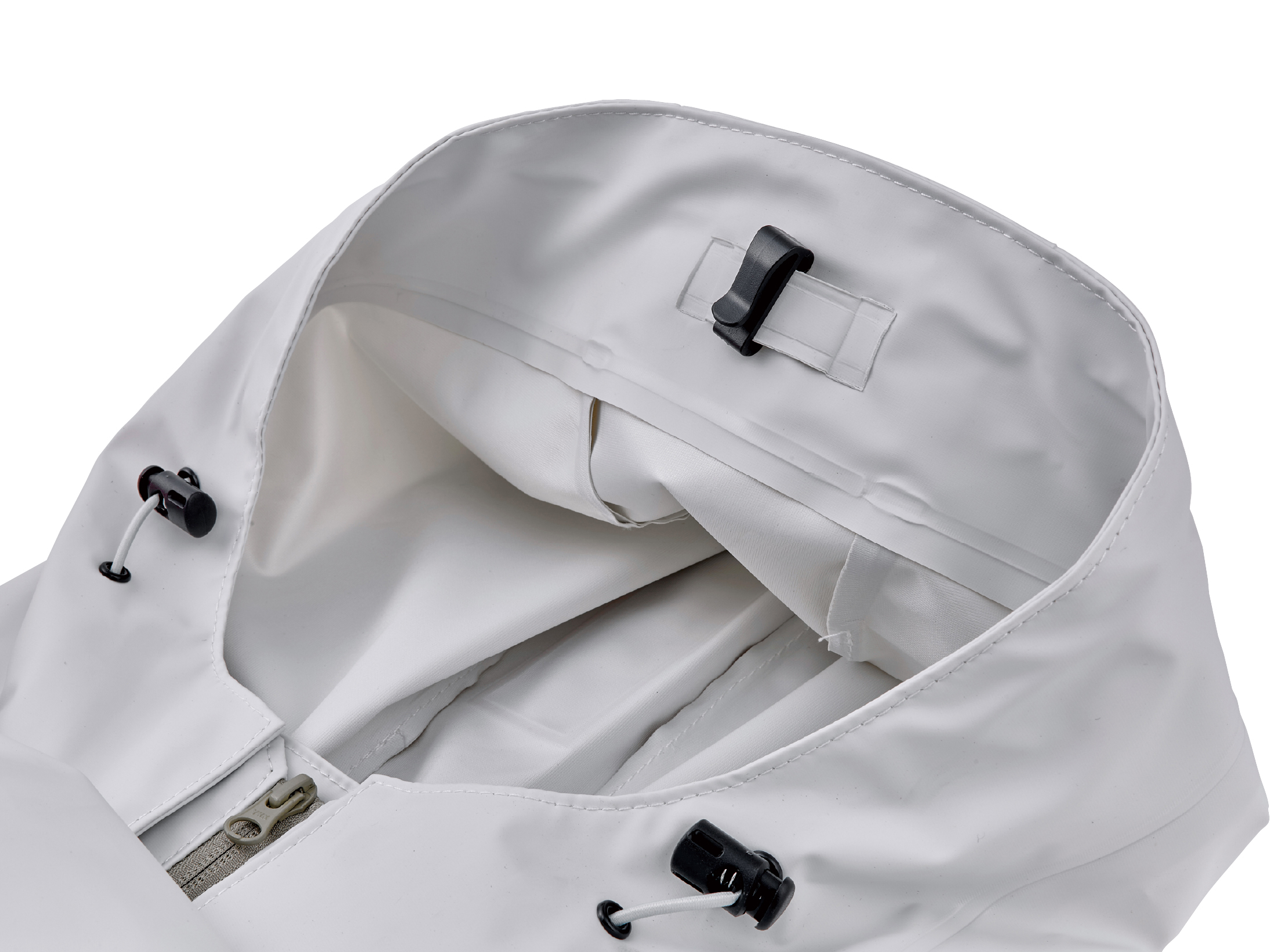 ●表地には高耐久性P.V.C素材を採用し、汚れやシブキをしっかり弾く抜群の防水性を実現。