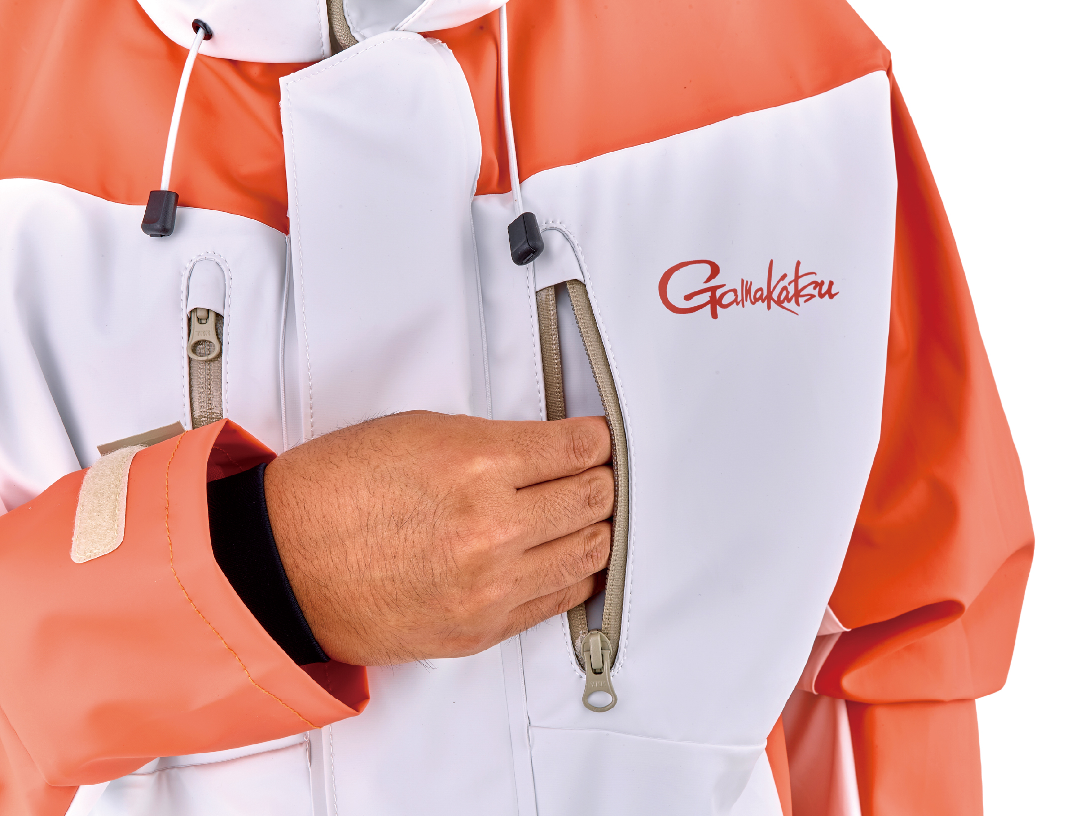 エアベストやエアフローターを着用時でも取り出しやすい位置に止水ファスナーポケットを配置。