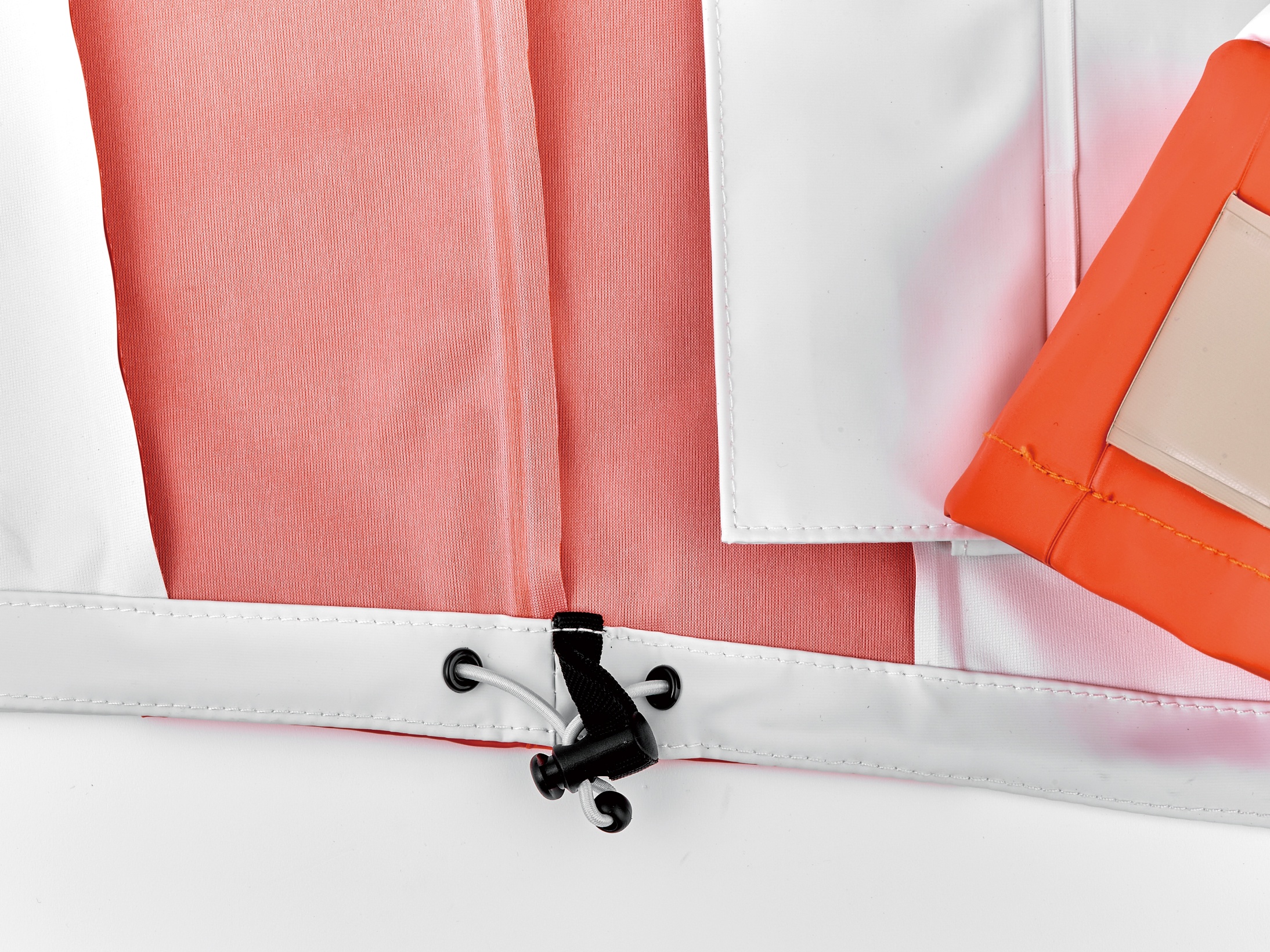 裾部にドローコードを採用。風の侵入を防ぎ体にフィット。