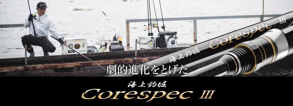 近年ますます細分化される釣法に対応するため、コアスペック3では用途別に最適な性能を引き出すためのロッド設計にこだわり、幅広いラインナップを展開しています。穂先には釣法ごとに最適な線径や素材を採用し、それぞれのスタイルに応じたアプローチを可能にしています。さらに、ガイドセッティングにも工夫を凝らし、パワー系釣法にはライン放出性に優れた大口径ガイド、繊細な釣法にはより操作性を高める小口径ガイドを搭載。今回からは新たに「並継モデル」を採用することで、これまでの振出モデルでは実現できなかった自由度の高いガイドセッティングが可能になり、より緻密なタックルセッティングを実現しました。ブランクには粘りと強度に優れたカーボン素材を使用し、細身ながら肉厚に設計することで、操作性としなやかな粘りを両立。掛けるまでは操作性が高く、掛けた後は魚の引きにしっかりと追従する調子で、竿を曲げて耐えるだけで自然と魚を弱らせることができます。これにより小型魚から大型魚までサイズを問わず対応でき、バラシを防ぎながら確実なキャッチへとつなげます。釣法に応じた機能美と、釣り人のパフォーマンスを最大限に引き出す設計思想が融合した、まさに“進化し続けるロッド”です。