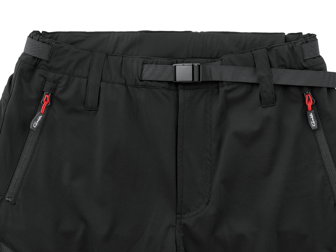 ウエストはゴムシャーリングとアジャスターベルトでしっかりフィット。ヒップガード用ベルトループ付。パンツ前ファスナー付で着脱簡単。