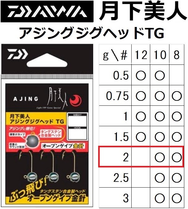 ダイワ/DAIWA 月下美人 アジングジグヘッドTG 2.0g #10, #8 ライトゲーム アジ・メバル用(メール便対応)