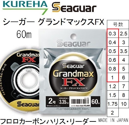 クレハ/Kureha シーガー グランドマックスFX 60m 0.3,0.4,0.5,0.6,0.8,1号 1.2,1.6,2,2.4,3,4Lbs フロロカーボンハリス・リーダー国産・日本製Seaguar Grandmax