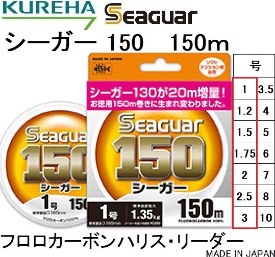 | 号柄 | Lbs | 標準直径(mm) | 結節強力(kg) | 150m巻 |